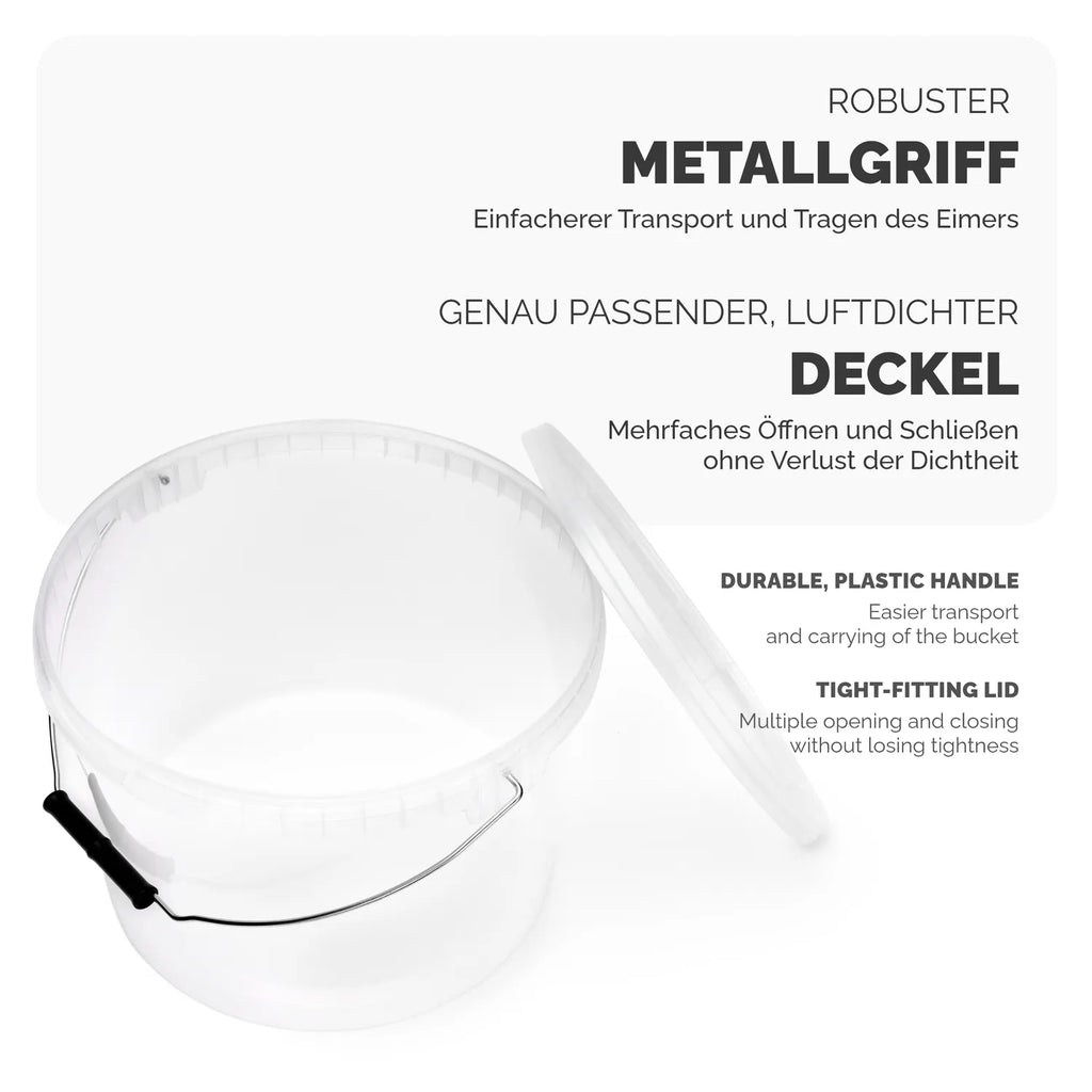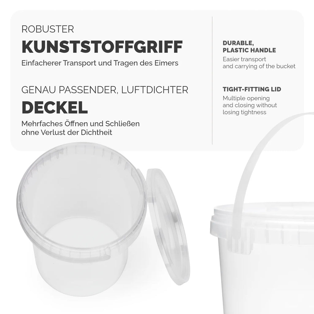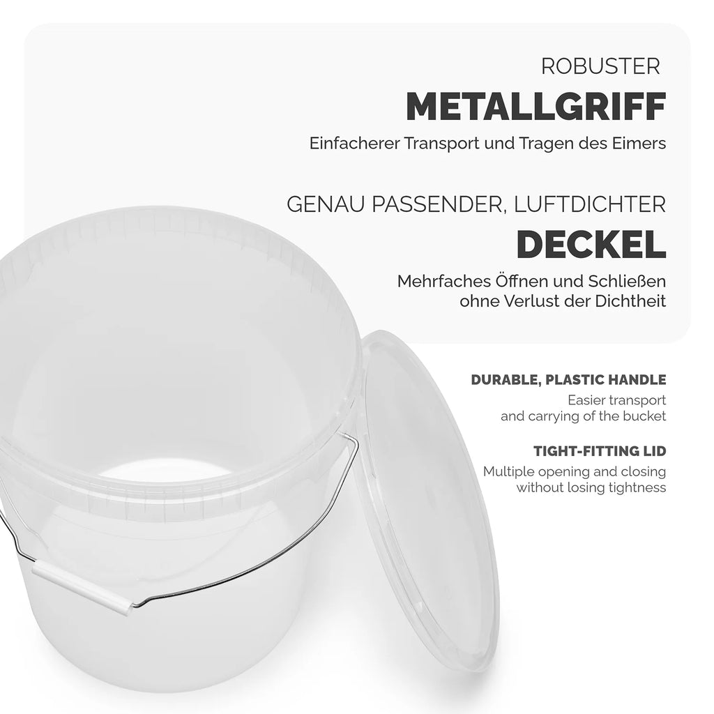 - Lebensmittelecht - Kübel mit Deckel Auslaufsicher, robust, praktisch, wasserdicht. Sicher & langlebig. Kunststoffeimer mit Spitzen-Verarbeitungsqualität. Aus Polypropylen (PP).