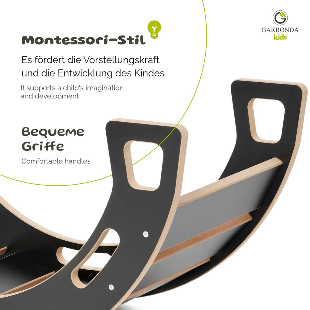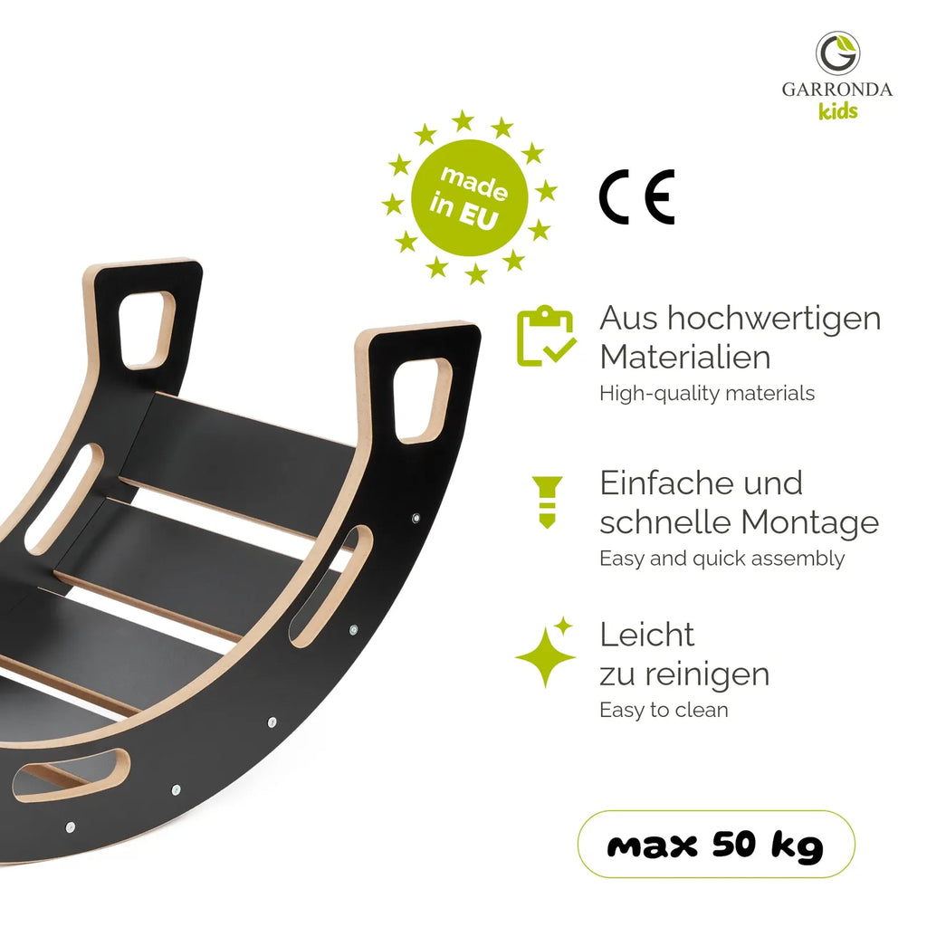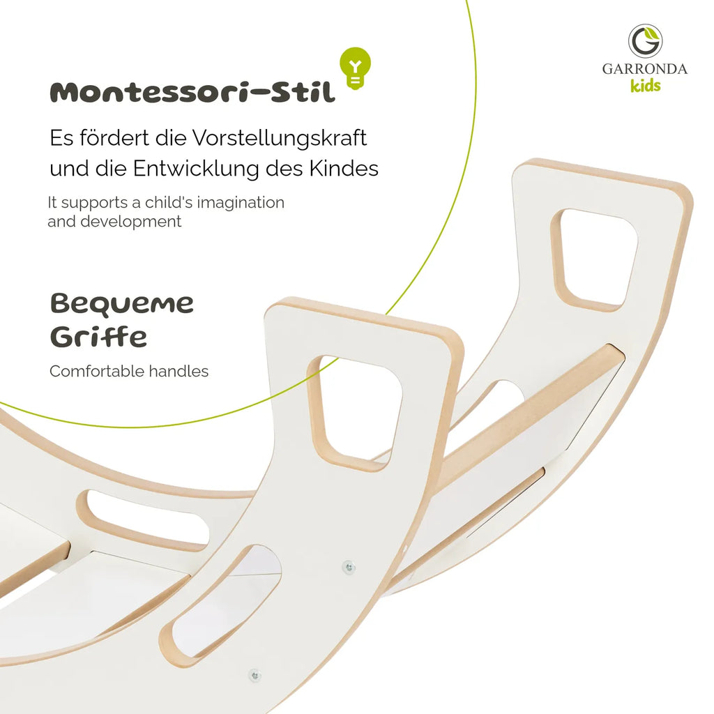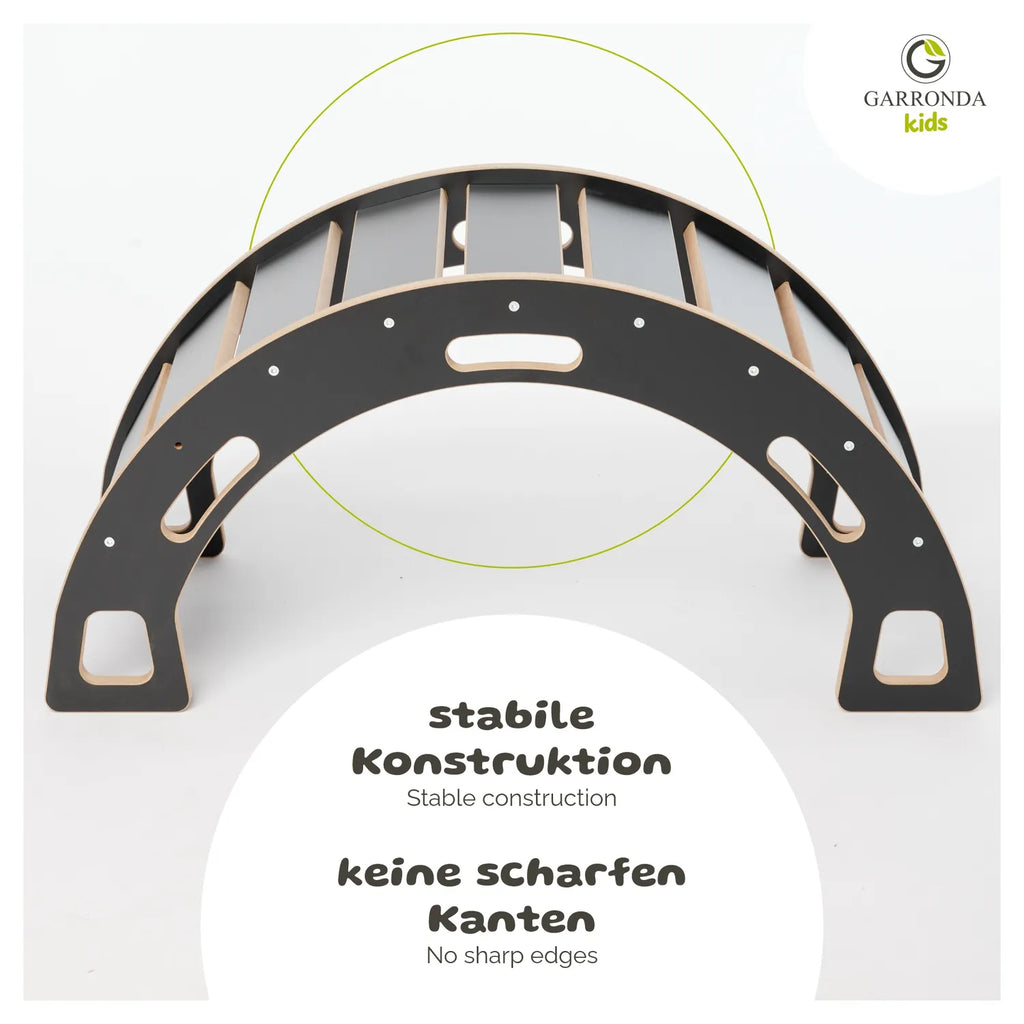 Der Garronda Montessori Kletterbogen für Kinder ist eine exzellente Wahl für die Kleinsten ab dem 1. Lebensjahr. Sie verbindet die Funktionen eines motorischen Spielzeugs und praktischen Möbelstücks für das Kinderzimmer. Mit dem Kletterbogen können Kinder ihre Kletterfähigkeiten erkunden und fördern so eine harmonische Entwicklung und Kreativität. Unterstützt von der Montessori-Philosophie. Das ist ein ideales Geburtstags- oder Weihnachtsgeschenk für kleine Entdecker.