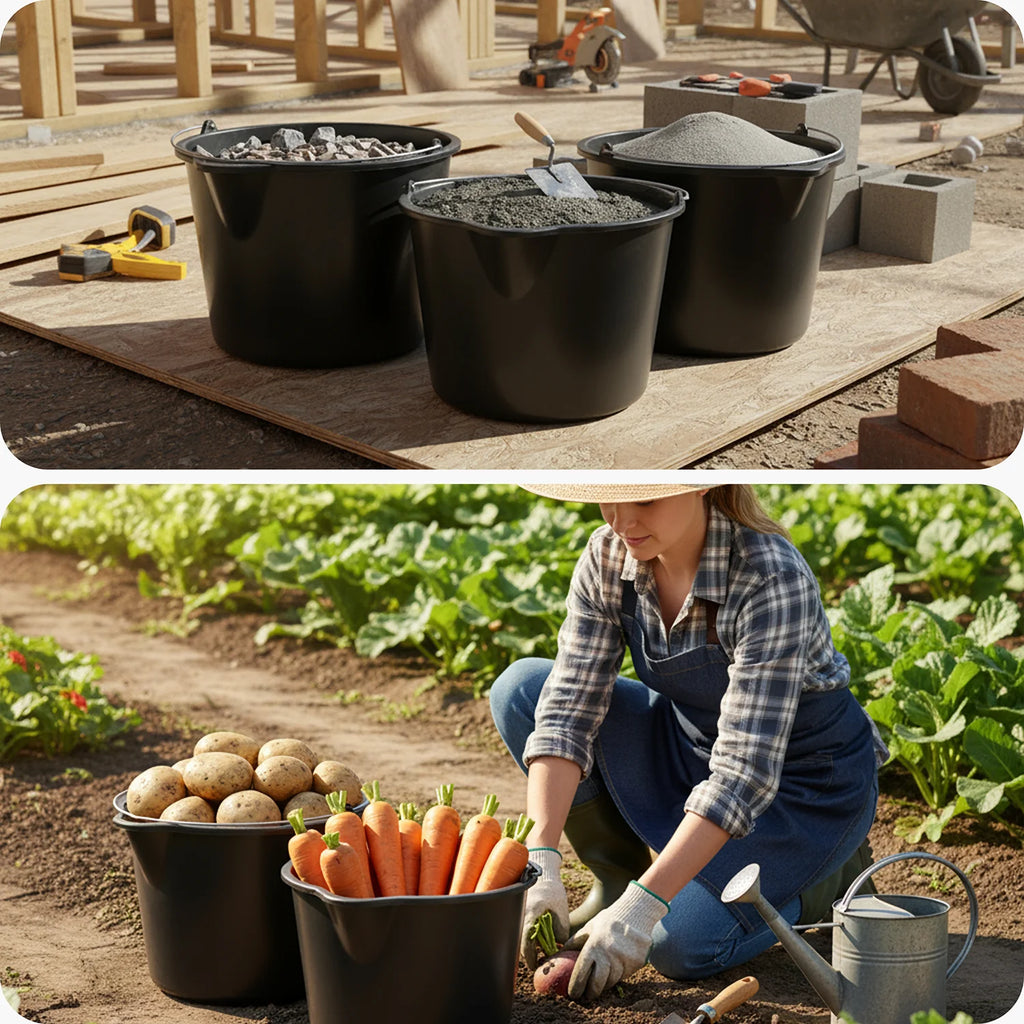 - Hergestellt in der EU – universell einsetzbarer Baueimer mit Ausguss für Bau, Garten und Haushalt. Ideal zum Mischen, Transportieren und Gießen von Mörtel, Wasser oder Baustoffen. Praktisch für Heimwerker und Profis.