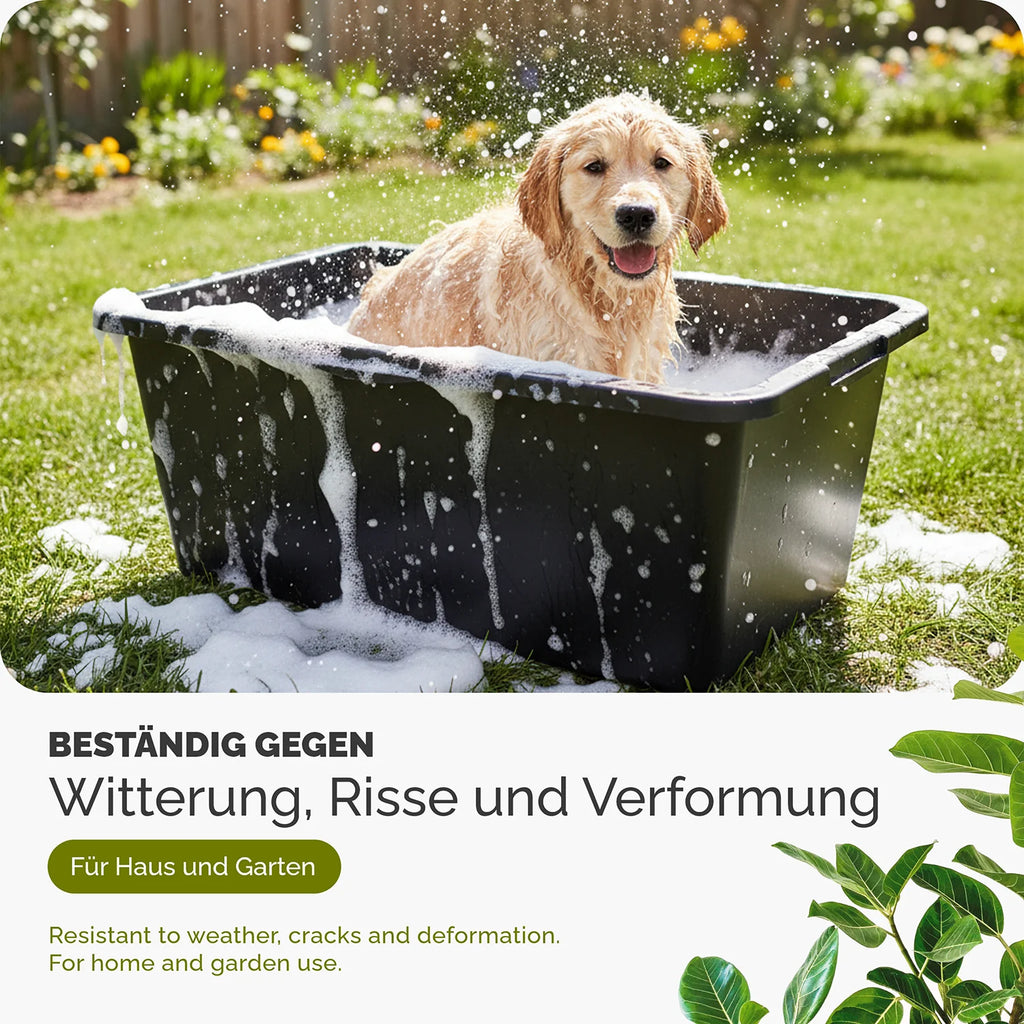 Hergestellt in der EU – die robusten Mörtelwannen und Mörtelkübel eckig von Garronda überzeugen durch hohe Stabilität, Umweltfreundlichkeit und vielseitige Einsatzmöglichkeiten. Gefertigt aus ca. 90 % recyceltem Polyethylen (PE) und bis zu 10 % Polypropylen (PP) sind sie besonders widerstandsfähig, wetterfest und bruchsicher.