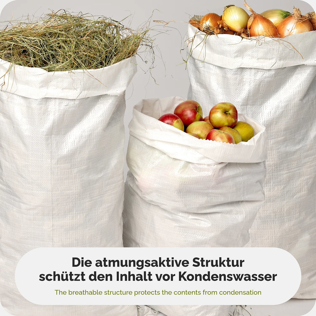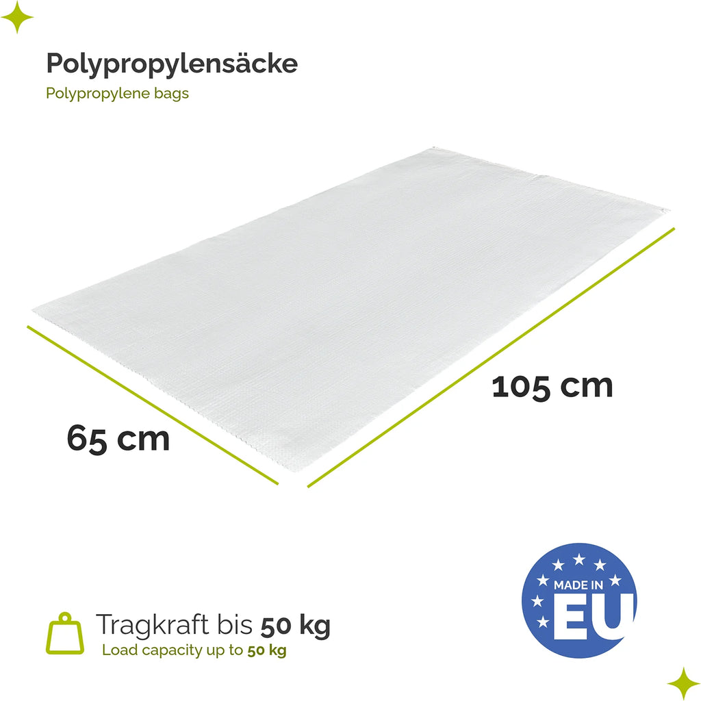 Die Garronda Polypropylensäcke bestehen aus hochwertigem, dicht gewebtem Polypropylen (PP) und bieten eine zuverlässige Lösung für die Lagerung und den Transport von Schüttgütern in Haus, Garten, Landwirtschaft und Gewerbe. Durch ihre hohe Reißfestigkeit und Strapazierfähigkeit eignen sie sich für den täglichen Einsatz – ob als Sandsäcke, Gartensack, Getreidesack, Kartoffelsack oder als Schwerlastsäcke im Bauumfeld. Die atmungsaktive Struktur schützt den Inhalt vor Kondenswasser und unterstützt die trockene Lagerung von Materialien wie Getreide, Holz, Laub, Gemüse, Futtermitteln oder Kohle. Die PP Säcke sind in zwei Varianten erhältlich: 105 x 65 cm mit 98 g Gewicht und 50 kg Tragkraft sowie 85 x 55 cm mit 62 g Gewicht und 25 kg Tragkraft. Der verstärkte Boden ist 1-fach genäht, während der obere Rand mit einem Zickzack-Heißschnitt versiegelt ist – für maximale Stabilität. Die weiße, unbedruckte Oberfläche bietet eine neutrale Optik und ist UV-beständig sowie mehrfach verwendbar. Ob im Garten, im Lager oder auf der Baustelle – die Säcke lassen sich platzsparend aufbewahren und bei Bedarf schnell mit Bausand, Spielsand oder anderen Füllstoffen befüllen. Lieferung erfolgt unbefüllt. Dank ihrer Eigenschaften werden sie auch in der chemischen und lebensmittelverarbeitenden Industrie eingesetzt. Als Transportsack oder Lagersack sind sie besonders geeignet für kleinere bis mittlere Materialmengen. Garronda bietet funktionale und langlebige Produkte für Garten und Haushalt. Die Polypropylensäcke sind als 5er-, 10er- oder 20er-Pack erhältlich – abgestimmt auf die Bedürfnisse von privaten Anwendern, Handwerkern oder Landwirten.