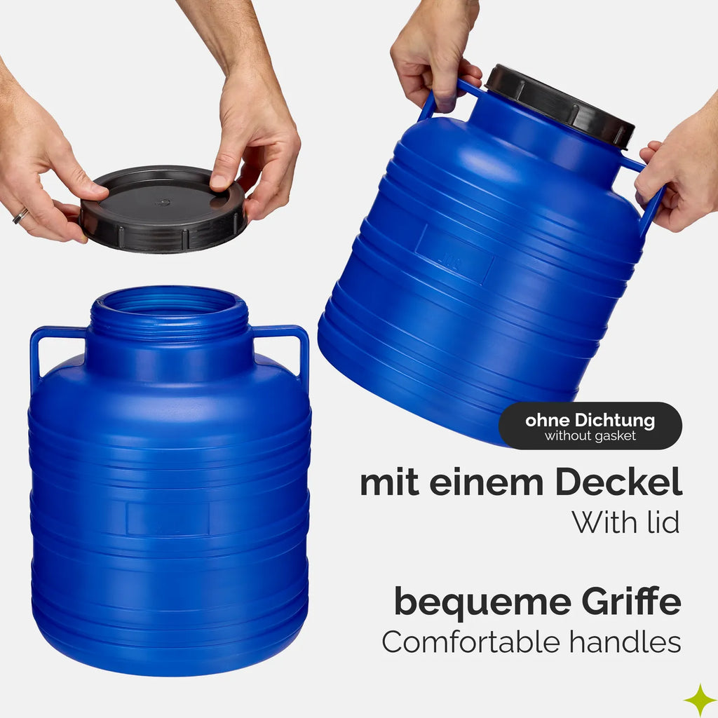 Der Gärbehälter ist BPA-frei. Es wird keine fremden Gerüche aufnehmen, ist daher sicher für die Aufbewahrung von Lebensmitteln und ideal für Haus, Garten, Werkstatt, Hobby.