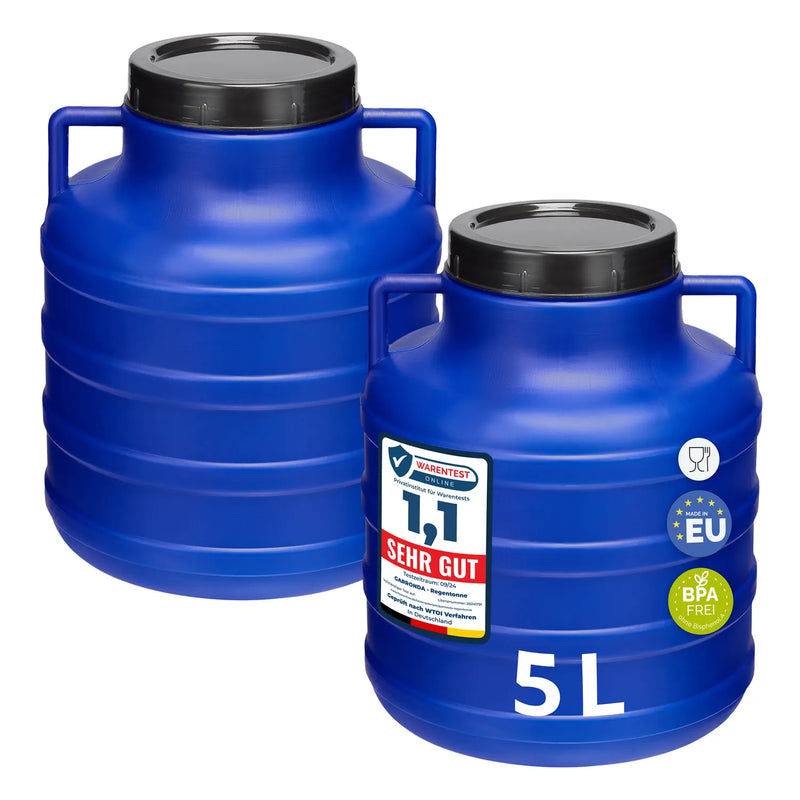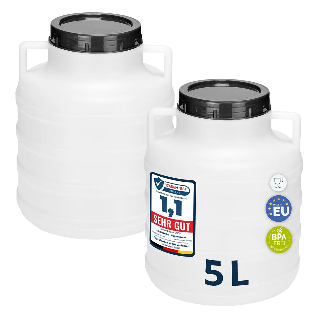 Hergestellt in der EU aus leichtem, ungiftigem HDPE, jeweils mit einem Deckel. Lieferumfang: Set aus 2 Stück Fässern 5L.
