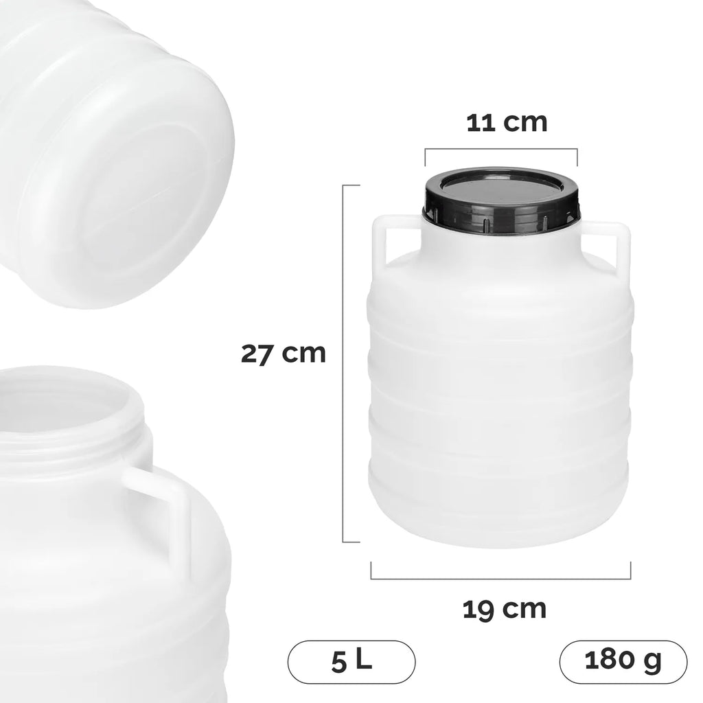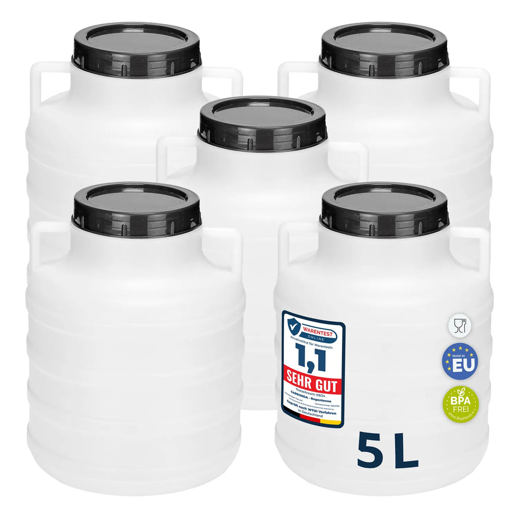 Hergestellt in der EU aus leichtem, ungiftigem HDPE, jeweils mit einem Deckel. Lieferumfang: Set aus 5 Stück Fässern 5L.