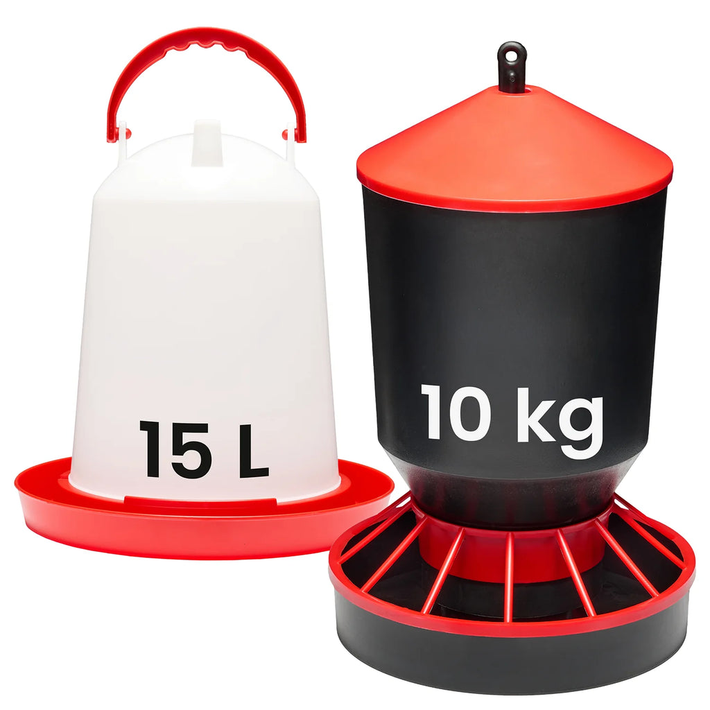 Das Garronda Set aus Hühnertränke und Futterautomat bietet eine durchdachte Komplettlösung für die zuverlässige Versorgung von Hühnern, Küken, Wachteln und anderem Geflügel – ob im Hühnerstall oder im mobilen Freigehege.