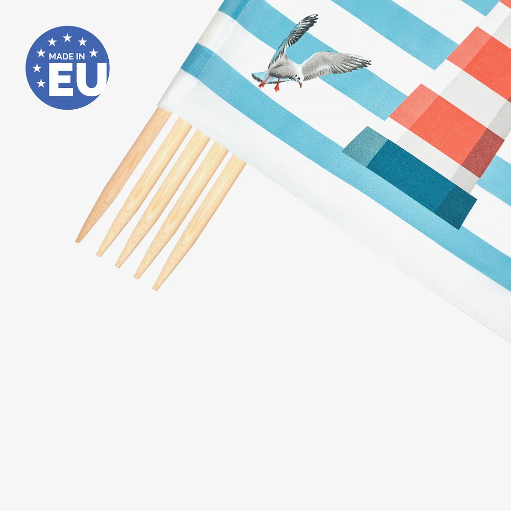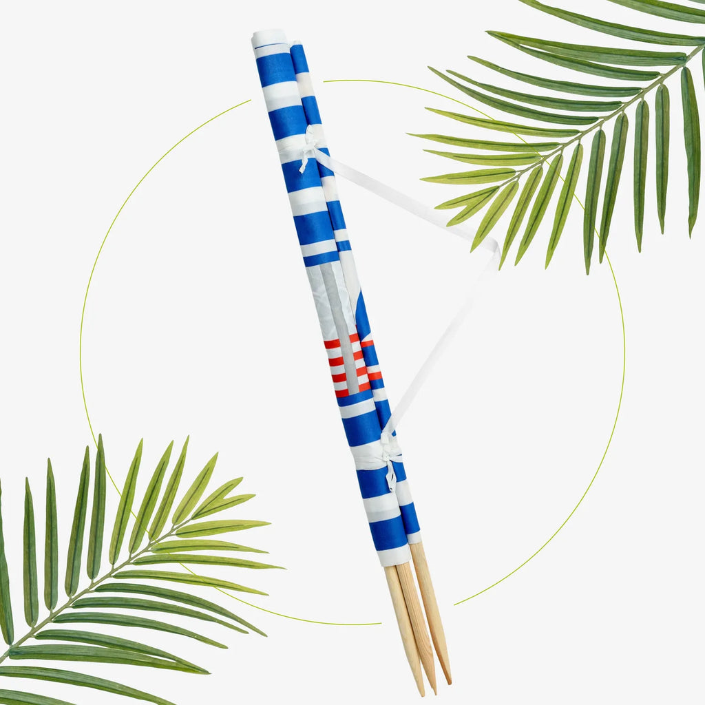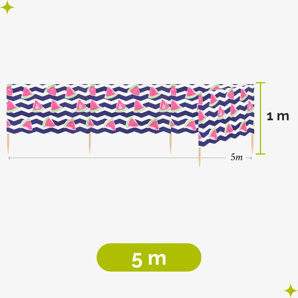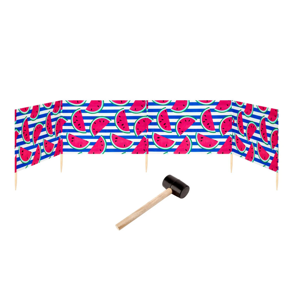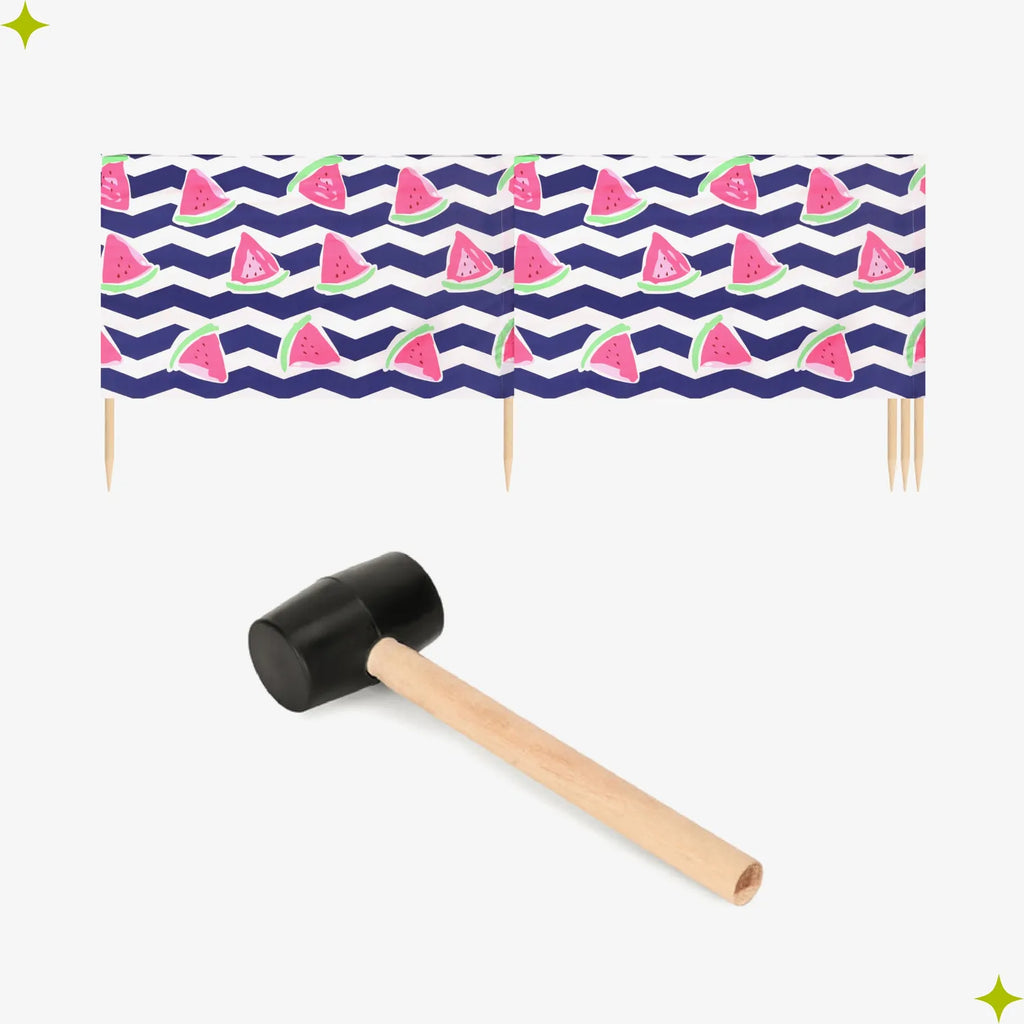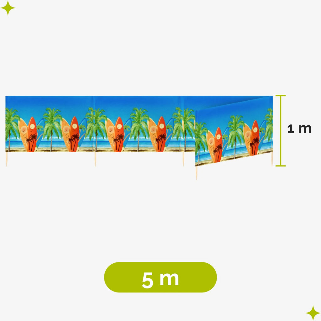 Strand Windschutz. Paravent. Unentbehrlich für jeden Strandgänger. Beim Kauf des Windschutzes erhalten Sie einen Gummihammer dazu, mit dem der Wundschutz unkompliziert im Boden befestigt werden kann. Der Strandwindschutz wurde aus starkem Material hergestellt, das auf soliden Holzstöcken angebracht wurde. Der Paravent gibt Schutz vor Wind und Sand am Strand. Außerdem ist der Paravent ein ideales Mittel, um sich ein wenig Privatsphäre am Strand zu sichern. Er schützt sehr gut vor neugierigen Blicken. Ungefähre Maße: Länge: 5 Meter; Höhe 77 cm Anzahl der Kieferstöcke: 5 Länge der Stöcke (gänzliche Höhe des Paravents): 1m Das Material des Paravents rutscht nicht von den Stöcken, da es entlang des oberen Randes vernäht wurde. Die Stöcke fallen nicht aus dem Materialtunnel, da sie mit Hilfe von Klammern befestigt wurden. Unten wurden die Stöcke gespitzt, was beim Einstecken in den Sand hilfreich ist.