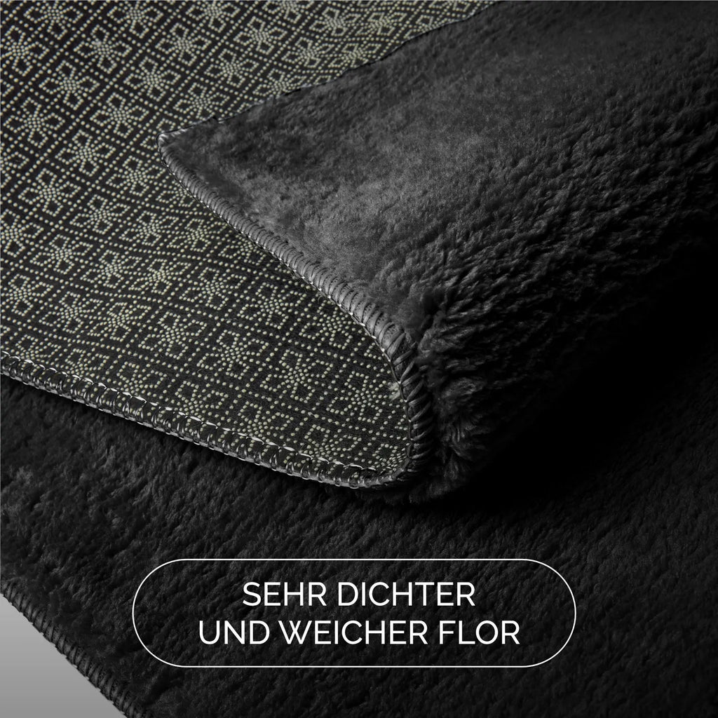 - Hochwertiger Kurzflor Teppich aus 100?% Polyester, ca. 10?mm Florhöhe – angenehm weich. Der Wohnzimmer Teppich ist robust, formstabil und ideal für Schlafzimmer & Wohnräume.