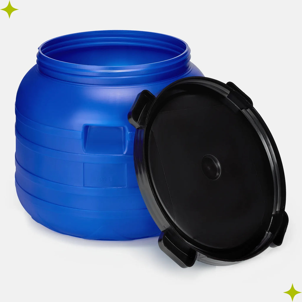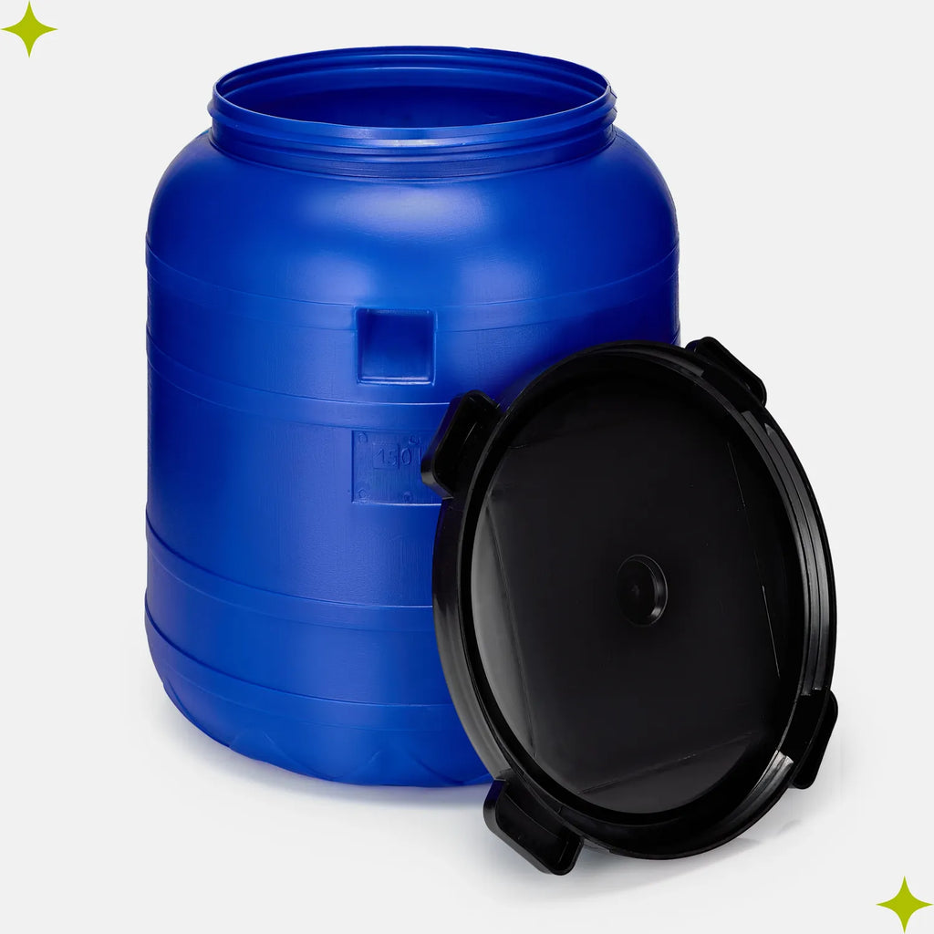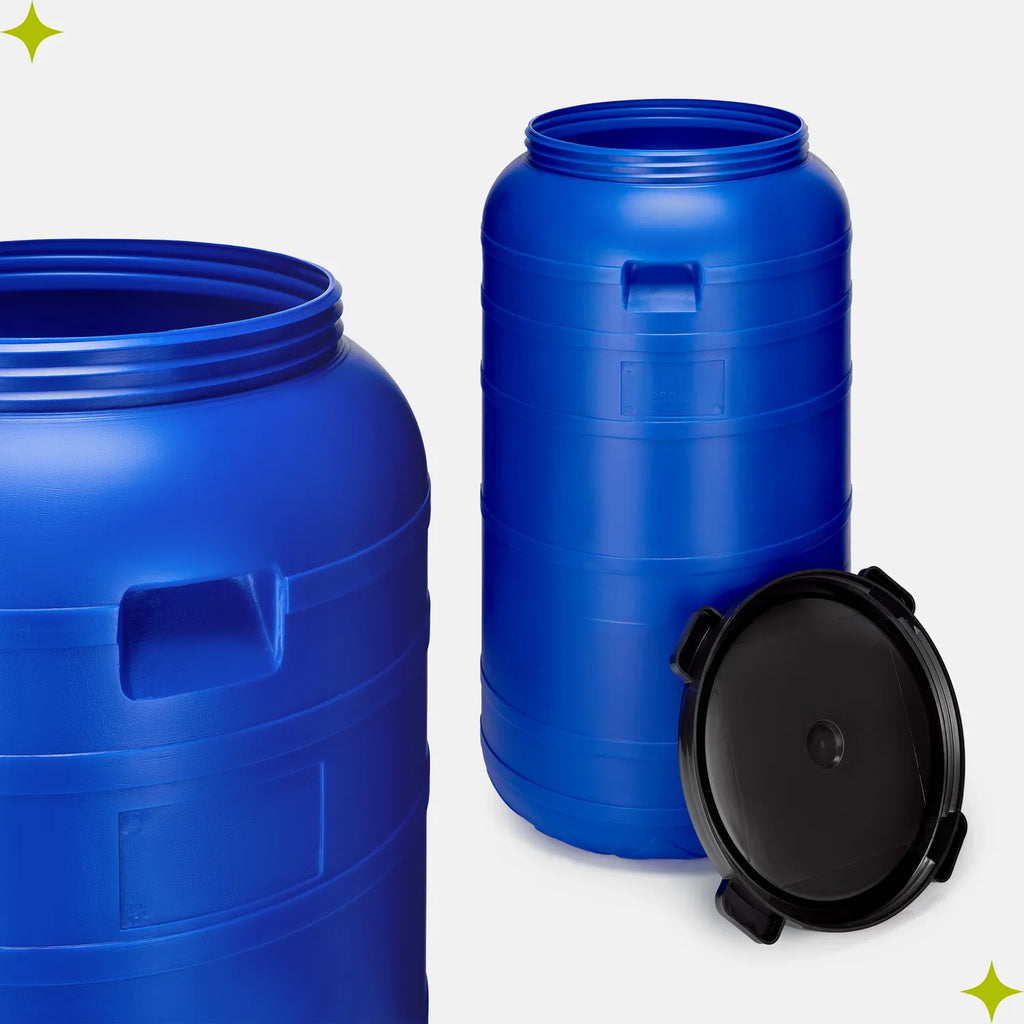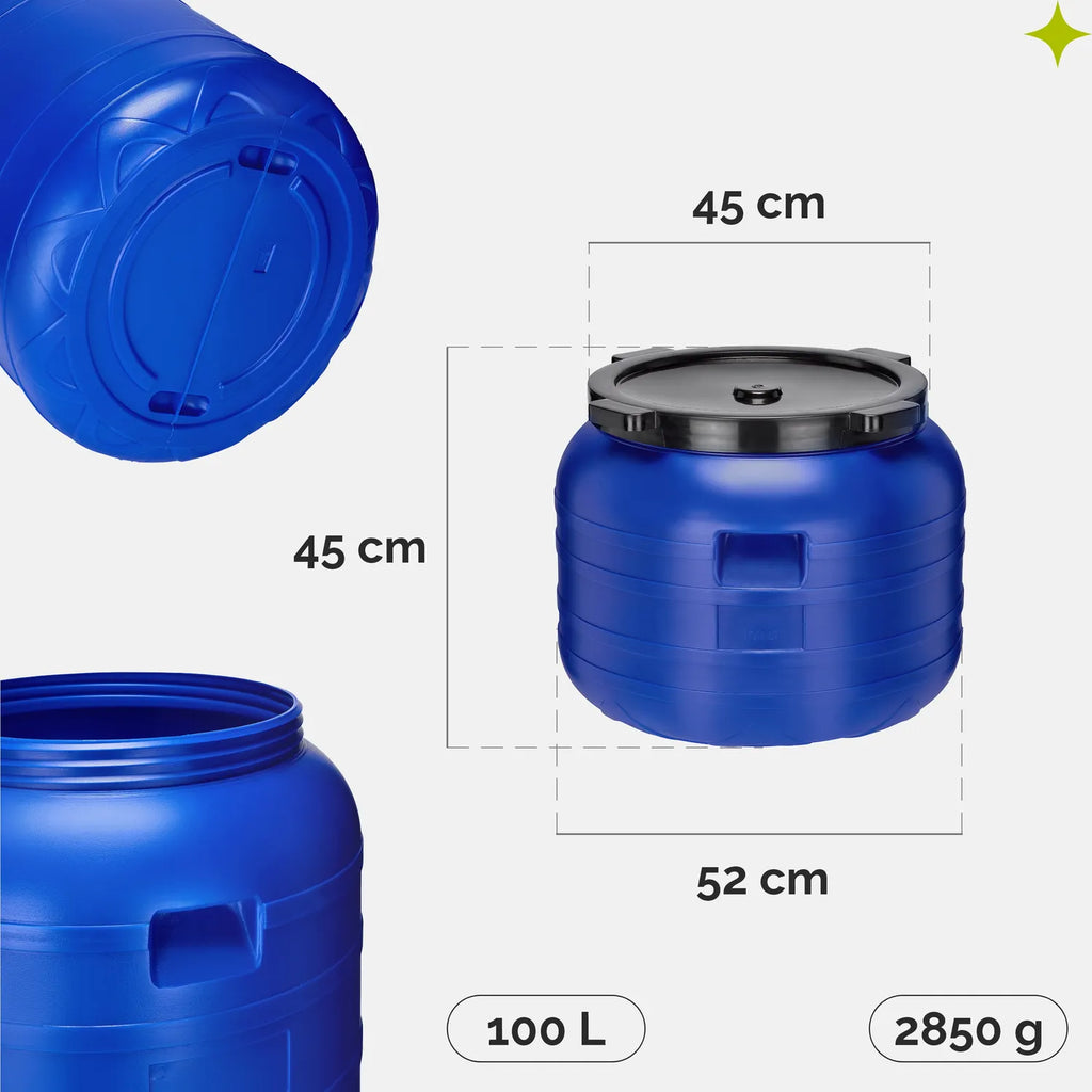 Vielseitige Regentonne für zahlreiche Anwendungen: Unser praktisches Fass mit Deckel, als Regenwassertank, Wassertonne, Weinfass oder Gärfass, ist ein vielseitiger wasserdichter Behälter aus BPA-freiem, witterungsbeständigem und UV-resistentem Kunststoff, der lebensmittelecht und sicher für den Einsatz in der Lebensmittelindustrie ist. Dieses robuste Fass ist ideal zur sicheren Aufbewahrung von Wasser, Tierfutter sowie trockenen Lebensmitteln wie Getreide oder Pellets. Der schützende Deckel der Regentonne sorgt dafür, dass der Inhalt frisch bleibt und zuverlässig vor Feuchtigkeit sowie Schädlingen geschützt ist. Dank seines leichten Designs lässt sich der Behälter einfach transportieren und ist bequem in der Handhabung. Leichte Reinigung und vielseitiger Einsatz: Die glatte Oberfläche der Regentonne erleichtert die Reinigung, was besonders bei der Verwendung im Lebensmittel- und Pharmabereich von Vorteil ist. Dies gewährleistet eine einfache Pflege und hygienische Lagerung. Ob auf dem Bauernhof, im Garten, in der Garage oder im Haushalt – dieser Behälter ist die ideale Lösung zur Wasseraufbewahrung, zum Transport von Wasser, Futtermitteln und trockenen Produkten wie Katzenstreu oder zur Nutzung als Weinfass, Gärfass, Gärbehälter sowie zur Mülltrennung.